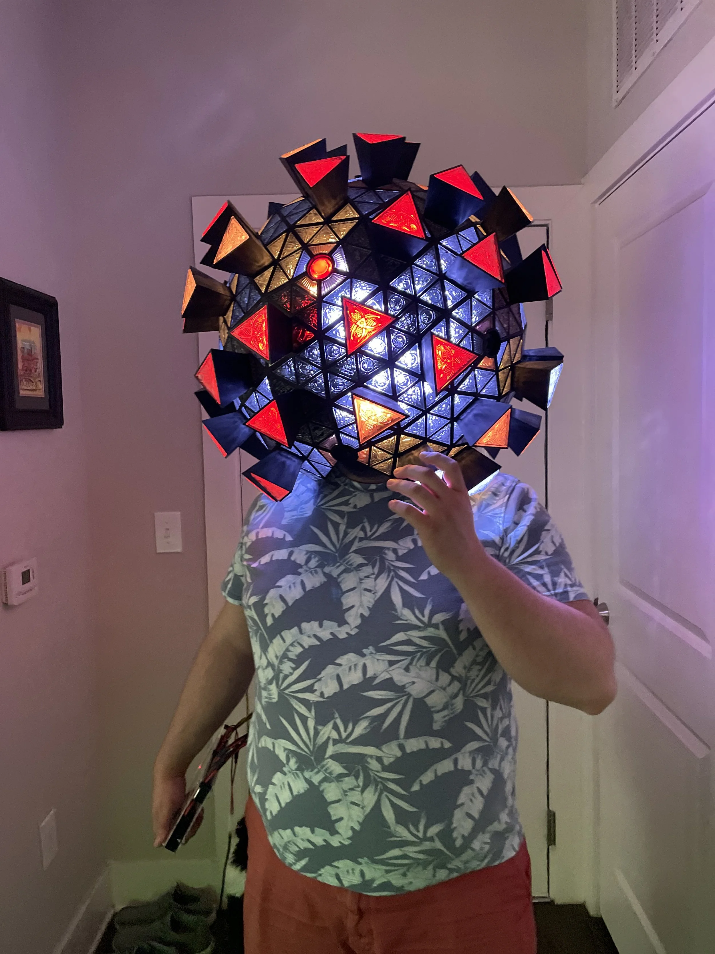 The Gift of Goodwill was first shown at Local Street ‘23 show at the Mint Museum in Uptown Charlotte in November of 2023. The spherical component is approximately 23 inches in diameter and was constructed from a 3D Printed black frame, covered with 720 clear resin crystals over custom designed PCBs with addressable RGB LEDs.