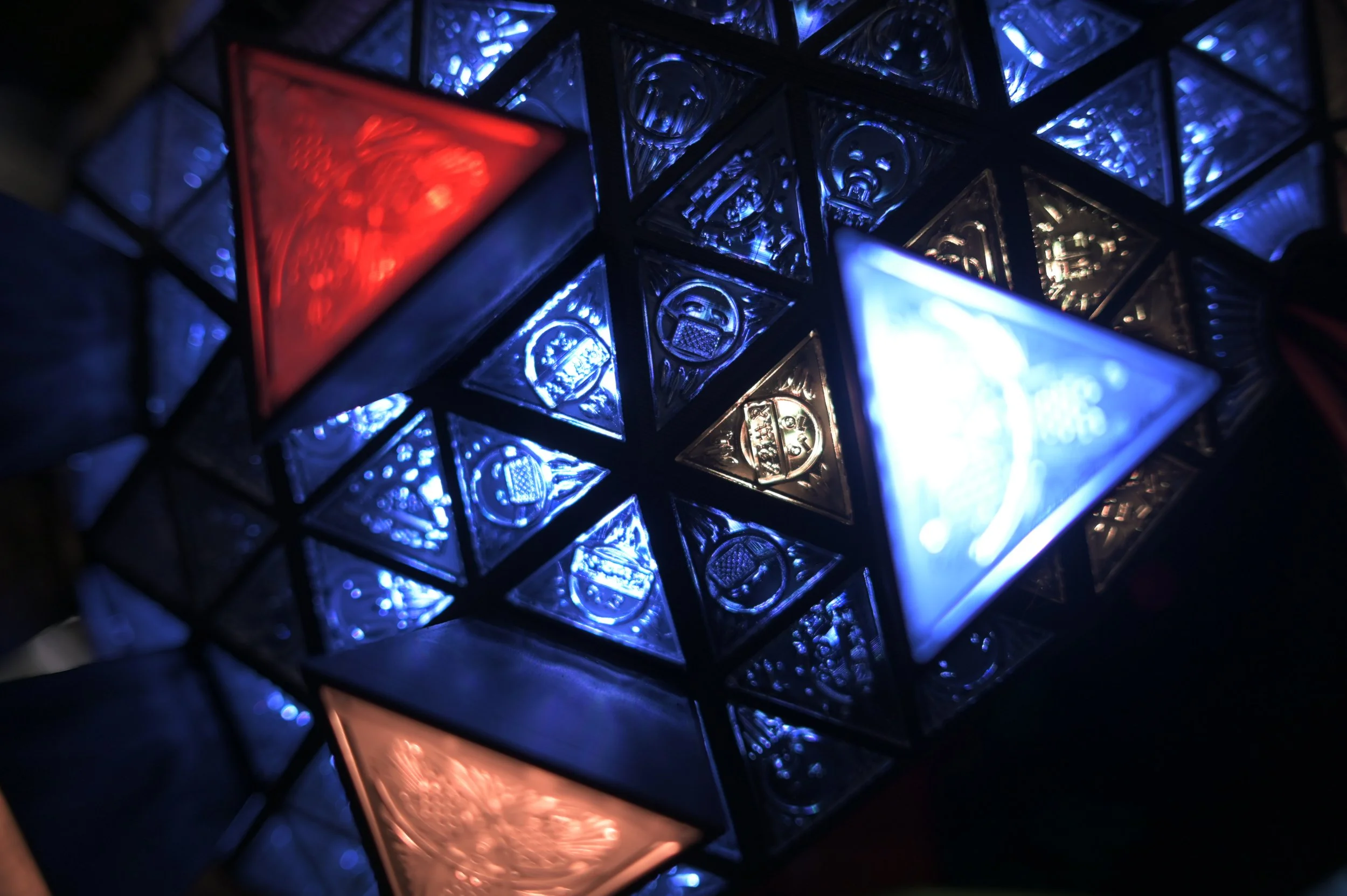 The Iconic red protein spikes of the Coronavirus featuring the "Gift of Goodwill" pineapple symbols - added to the Times Square Ball to welcome in 2020.