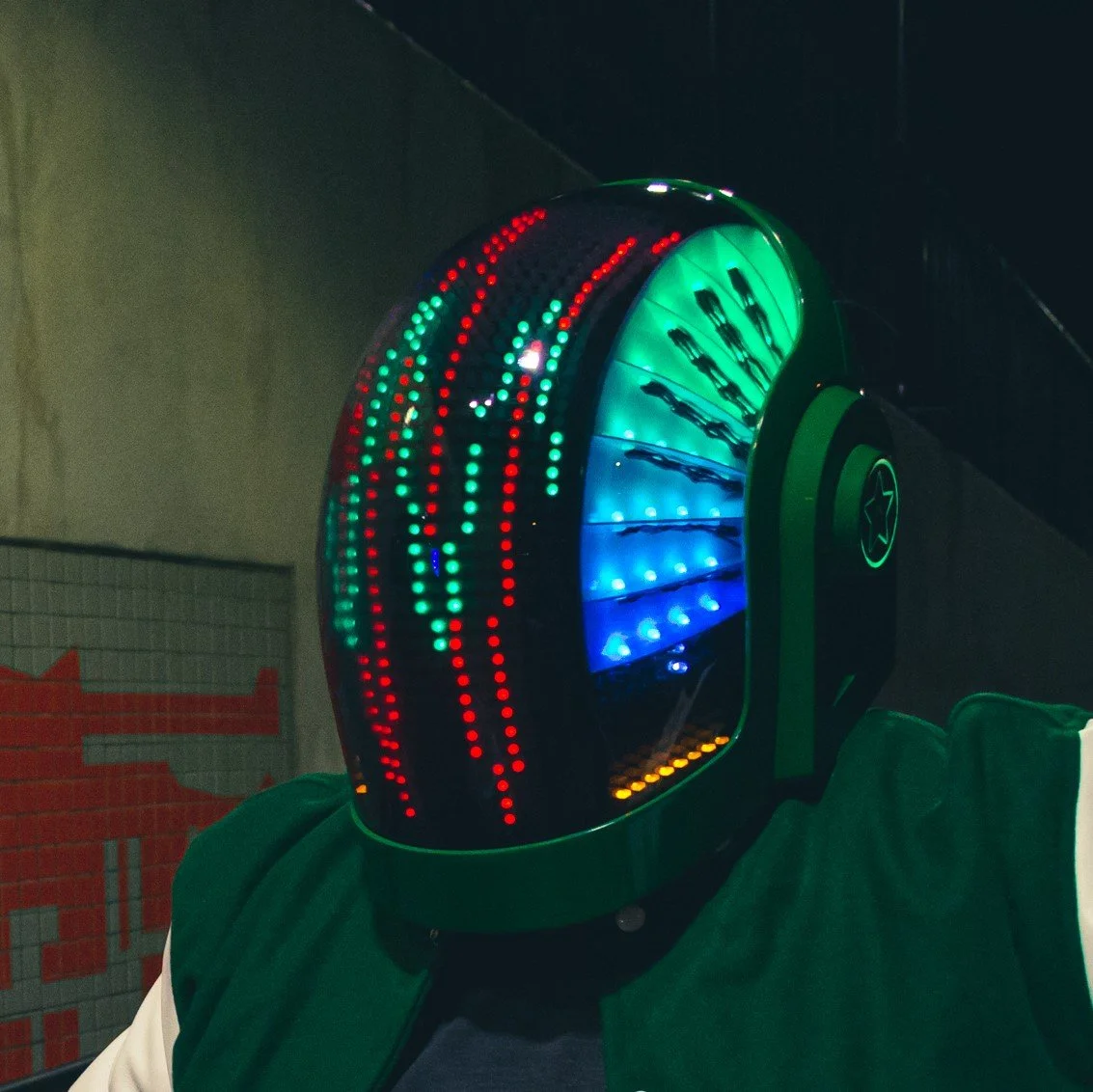 The current iteration is a mashup of Daft Punk’s iconic robot helmets, with design nods to the Super Mario Brothers. Featuring hand soldered, see-through RGB LED matrices, durable 3D Printed frames, and glossy automotive enamel finishes, they have formed the basis of our creative personalities in the community.